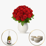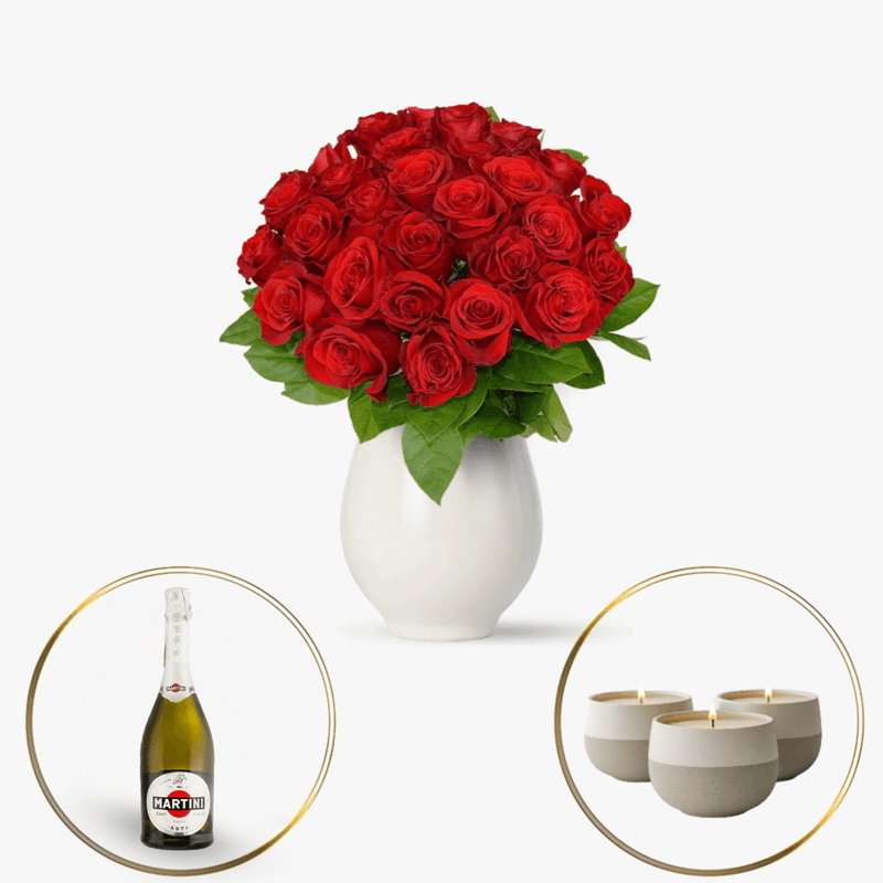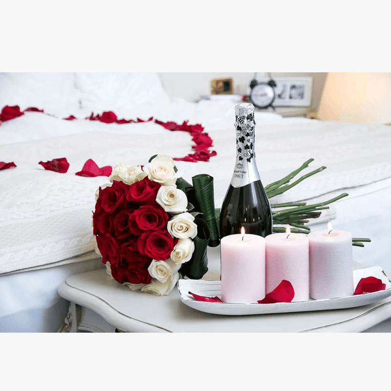 Flower petals, a bouquet of red roses, champagne, candles... if there is a perfect kit for a romantic evening, then this is it. You know the famous movie scenes, with flower petals scattered in the room, declarations of love, champagne and candles? We believe that this is how a romantic evening spent as a couple should look like. And the best part is that you won't have to part with your sweetheart even for a few seconds, walking around the city looking for the right gift. You will be able to spend the whole day in her arms, because we will bring the gift to your door. However, you have to take care of the declaration of love.
